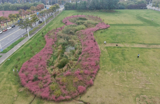 在中央商區(qū),成片的粉黛亂子草正值最佳觀賞期,云霧般的粉色花穗在陽光下輕盈搖曳,已成為市民爭相打卡的“網(wǎng)紅”景點(diǎn)。“粉黛亂子草觀賞性雖高,養(yǎng)護(hù)卻需格外精心。”建發(fā)公司相關(guān)負(fù)責(zé)人介紹,為維持其最佳觀賞狀態(tài),園區(qū)采取了分區(qū)、分時(shí)的精細(xì)化養(yǎng)護(hù)策略。盛花期期間,養(yǎng)護(hù)人員會(huì)精準(zhǔn)控制澆水量,避免過多水分影響花穗形態(tài);雨季則及時(shí)排水,嚴(yán)防積水導(dǎo)致爛根。同時(shí),還安排了專人全天巡視,引導(dǎo)游客在指定區(qū)域文明觀賞,并對(duì)局部受損區(qū)域?qū)嵤?ldquo;點(diǎn)對(duì)點(diǎn)”修復(fù),確保每一株粉黛都能以最美姿態(tài),展現(xiàn)秋天的溫柔與浪漫。