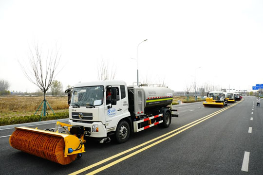 此次演練活動在園區(qū)復旦路和紫金山路現(xiàn)場展開,模擬宿遷地區(qū)寒潮大雪天氣下的道路掃雪除冰應急處置。隨著現(xiàn)場指揮一聲令下,演練正式拉開帷幕。所有人員及各類掃雪除冰設備迅速抵達指定位置,嚴格按照“雪前準備、預警發(fā)布、應急啟動”的流程展開作業(yè)。演練以機械除雪為主,人工清理為輔,多臺撒布機、雪滾車、雪鏟車等專業(yè)設備輪番上陣,在模擬的冰雪場景中高效進行清雪和除冰作業(yè),全面檢驗了應急預案的科學性和實操性。