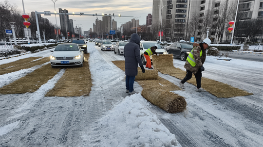 為確保城市主干道及橋梁暢通,建發(fā)公司緊抓夜間作業(yè)窗口,秉持“人歇車不歇”原則,調(diào)配精良設(shè)備與人員,對(duì)易結(jié)冰的橋面及主干道進(jìn)行高強(qiáng)度清除作業(yè)。作業(yè)人員利用后半夜車流較少的時(shí)機(jī),集中操作雪滾車、撒布機(jī)等設(shè)備,并同步在關(guān)鍵路口鋪設(shè)防滑墊。截至20日17時(shí),累計(jì)投入各類機(jī)械16臺(tái)、作業(yè)人員320名,撒布融雪劑60噸,有效保障了主要道路的安全通行。