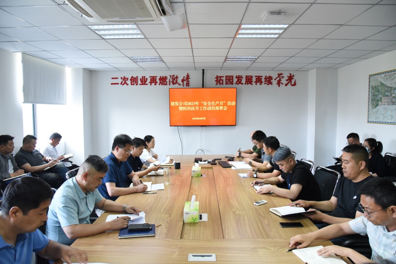 6月9日下午,建發(fā)公司召開安全生產(chǎn)工作會議,對做好2023年安全生產(chǎn)月活動、防汛抗旱工作進行了全面部署。公司副總經(jīng)理倪松主持會議,總經(jīng)理助理張洪高出席會議,各部門相關(guān)人員參加會議。